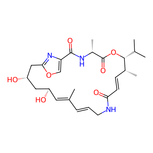 | SMILES | C[C@@H]1/C=C/C(=O)NC/C=C/C(=C/[C@H](C[C@@H](CC2=NC(=CO2)C(=O)N[C@@H](C(=O)O[C@@H]1C(C)C)C)O)O)/C |