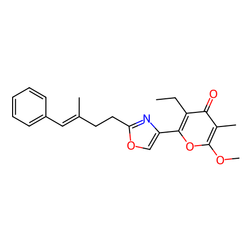 | SMILES | CCC1=C(OC(=C(C1=O)C)OC)C2=COC(=N2)CC/C(=C/C3=CC=CC=C3)/C |