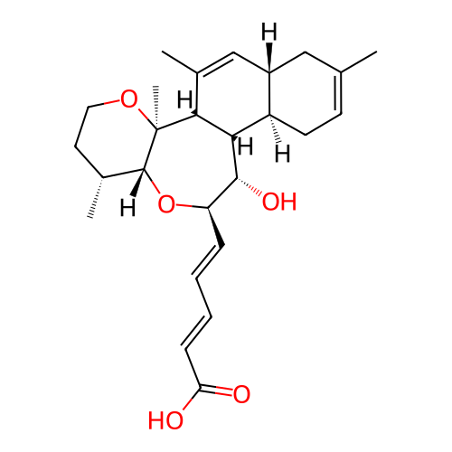 | InChI | InChI=1S/C26H36O5/c1-15-9-10-19-18(13-15)14-17(3)23-22(19)24(29)20(7-5-6-8-21(27)28)31-25-16(2)11-12-30-26(23,25)4/h5-9,14,16,18-20,22-25,29H,10-13H2,1-4H3,(H,27,28)/b7-5+,8-6+/t16-,18+,19-,20-,22+,23-,24-,25-,26+/m1/s1 |