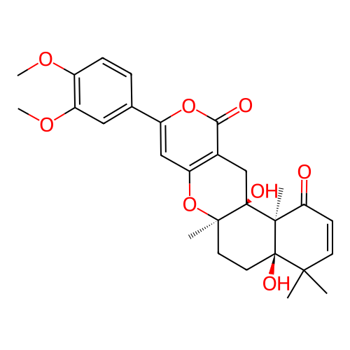 | InChI | InChI=1S/C28H32O8/c1-24(2)10-9-22(29)26(4)27(24,31)12-11-25(3)28(26,32)15-17-20(36-25)14-19(35-23(17)30)16-7-8-18(33-5)21(13-16)34-6/h7-10,13-14,31-32H,11-12,15H2,1-6H3/t25-,26+,27-,28-/m1/s1 |