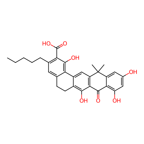 | SMILES | CCCCCC1=C(C(=C2C(=C1)CCC3=C(C4=C(C=C32)C(C5=CC(=CC(=C5C4=O)O)O)(C)C)O)O)C(=O)O |