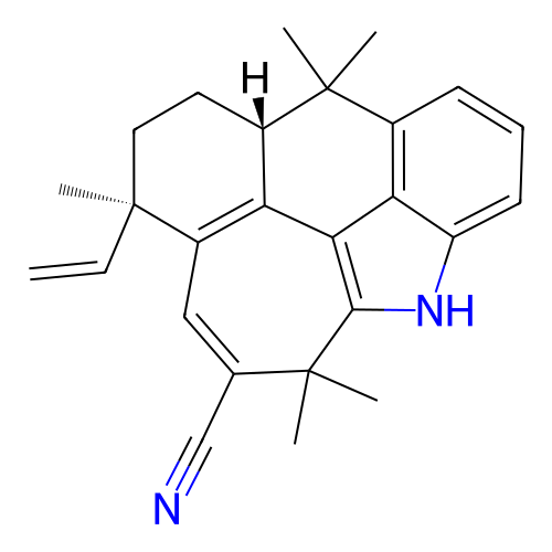| SMILES | C[C@@]1(CC[C@H]2C3=C1C=C(C(C4=C3C5=C(C2(C)C)C=CC=C5N4)(C)C)C#N)C=C |