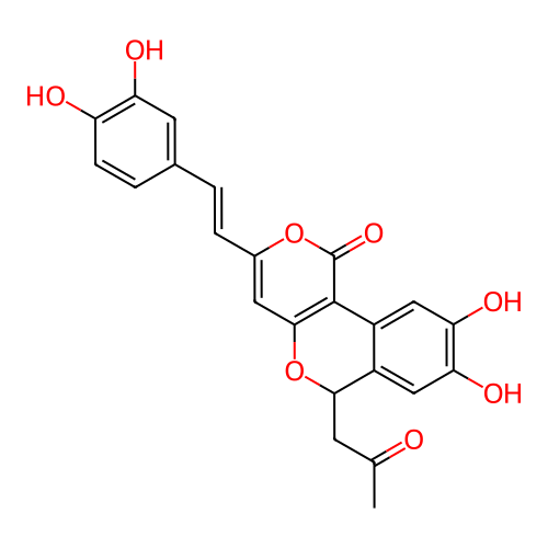 | InChI | InChI=1S/C23H18O8/c1-11(24)6-20-14-9-18(27)19(28)10-15(14)22-21(31-20)8-13(30-23(22)29)4-2-12-3-5-16(25)17(26)7-12/h2-5,7-10,20,25-28H,6H2,1H3/b4-2+ |