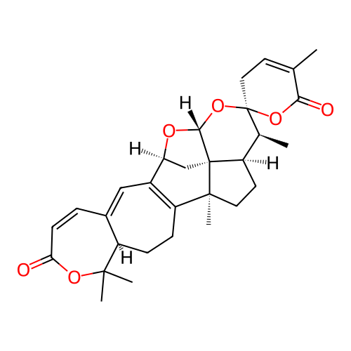 | InChI | InChI=1S/C30H36O6/c1-16-10-13-30(35-25(16)32)17(2)20-11-12-28(5)22-8-7-21-18(6-9-24(31)34-27(21,3)4)14-19(22)23-15-29(20,28)26(33-23)36-30/h6,9-10,14,17,20-21,23,26H,7-8,11-13,15H2,1-5H3/t17-,20+,21+,23-,26+,28-,29+,30+/m0/s1 |