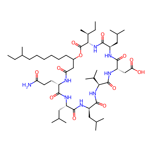 | SMILES | CC[C@H](C)[C@H]1C(=O)OC(CC(=O)N[C@H](C(=O)N[C@H](C(=O)N[C@@H](C(=O)N[C@H](C(=O)N[C@H](C(=O)N[C@@H](C(=O)N1)CC(C)C)CC(=O)O)C(C)C)CC(C)C)CC(C)C)CCC(=O)N)CCCCCCC(C)CC |