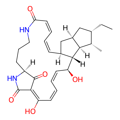 | SMILES | CC[C@H]1C[C@@H]2C[C@@H]3/C=C\C=C/C(=O)NCCC[C@H]4C(=O)/C(=C(\C=C/C=C\[C@@H]([C@H]3[C@@H]2[C@H]1C)O)/O)/C(=O)N4 |