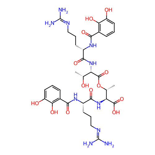 | SMILES | C[C@H]([C@@H](C(=O)O[C@H](C)[C@@H](C(=O)O)NC(=O)[C@H](CCCN=C(N)N)NC(=O)C1=C(C(=CC=C1)O)O)NC(=O)[C@H](CCCN=C(N)N)NC(=O)C2=C(C(=CC=C2)O)O)O |