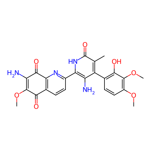 | SMILES | CC1=C(C(=C(NC1=O)C2=NC3=C(C=C2)C(=O)C(=C(C3=O)N)OC)N)C4=C(C(=C(C=C4)OC)OC)O |