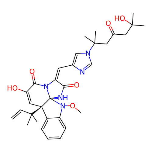 | SMILES | CC(C)(CC(=O)CC(C)(C)O)N1C=C(N=C1)/C=C/2\C(=O)N[C@]34N2C(=O)C(=C[C@]3(C5=CC=CC=C5N4OC)C(C)(C)C=C)O |