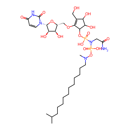 | SMILES | CC(C)CCCCCCCCCCCN(C)OP(=O)(N(CC(=O)N)P(=O)(O)OC1C(C(C(=C1OC[C@@H]2[C@H]([C@H]([C@@H](O2)N3C=CC(=O)NC3=O)O)O)CO)O)O)O |