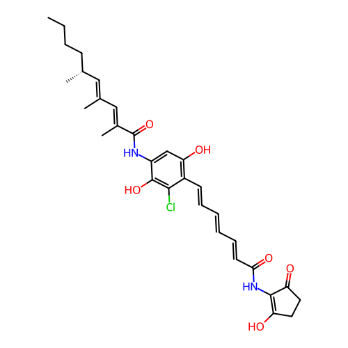 | SMILES | CCCC[C@@H](C)/C=C(\C)/C=C(\C)/C(=O)NC1=CC(=C(C(=C1O)Cl)/C=C/C=C/C=C/C(=O)NC2=C(CCC2=O)O)O |