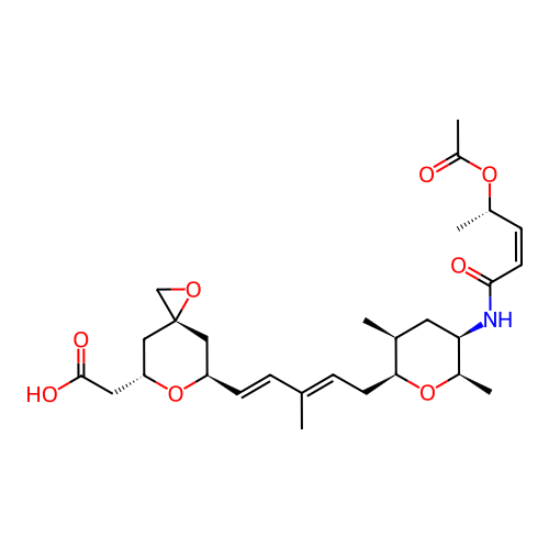 | SMILES | C[C@H]1C[C@H]([C@H](O[C@H]1C/C=C(\C)/C=C/[C@@H]2C[C@@]3(C[C@H](O2)CC(=O)O)CO3)C)NC(=O)/C=C\[C@H](C)OC(=O)C |
