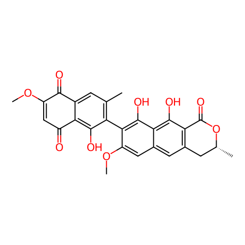 | SMILES | C[C@@H]1CC2=C(C(=C3C(=C2)C=C(C(=C3O)C4=C(C=C5C(=C4O)C(=O)C=C(C5=O)OC)C)OC)O)C(=O)O1 |