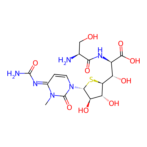 | SMILES | CN1C(=NC(=O)N)C=CN(C1=O)[C@H]2[C@@H]([C@H]([C@@H](S2)[C@H]([C@H](C(=O)O)NC(=O)[C@H](CO)N)O)O)O |