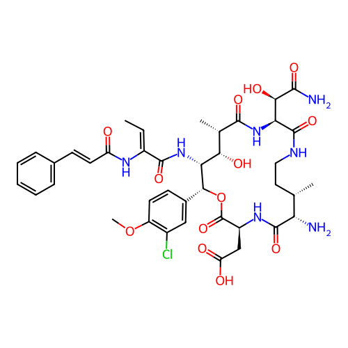 | SMILES | C/C=C(/C(=O)N[C@@H]1[C@H]([C@@H](C(=O)N[C@H](C(=O)NCC[C@@H]([C@@H](C(=O)N[C@H](C(=O)O[C@@H]1C2=CC(=C(C=C2)OC)Cl)CC(=O)O)N)C)[C@H](C(=O)N)O)C)O)\NC(=O)/C=C/C3=CC=CC=C3 |