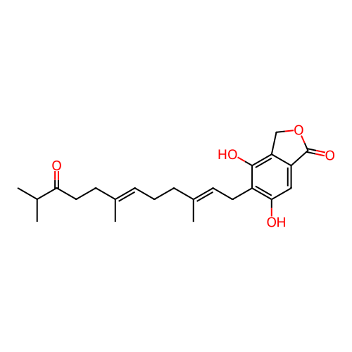 | SMILES | CC(C)C(=O)CC/C(=C/CC/C(=C/CC1=C(C=C2C(=C1O)COC2=O)O)/C)/C |