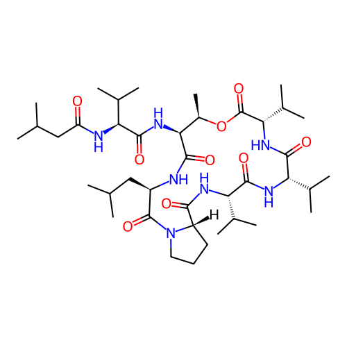 | SMILES | C[C@@H]1[C@@H](C(=O)N[C@@H](C(=O)N2CCC[C@H]2C(=O)N[C@H](C(=O)N[C@H](C(=O)N[C@H](C(=O)O1)C(C)C)C(C)C)C(C)C)CC(C)C)NC(=O)[C@H](C(C)C)NC(=O)CC(C)C |
