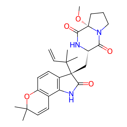 | SMILES | CC1(C=CC2=C(O1)C=CC3=C2NC(=O)[C@@]3(C[C@H]4C(=O)N5CCC[C@@]5(C(=O)N4)OC)C(C)(C)C=C)C |