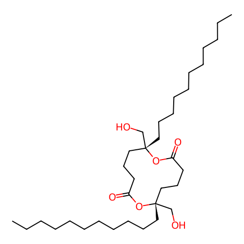 | SMILES | CCCCCCCCCCC[C@@]1(CCCC(=O)O[C@@](CCCC(=O)O1)(CCCCCCCCCCC)CO)CO |