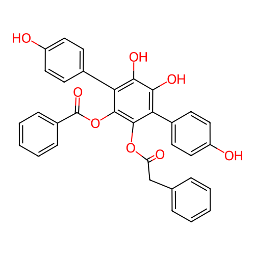 | SMILES | C1=CC=C(C=C1)CC(=O)OC2=C(C(=C(C(=C2C3=CC=C(C=C3)O)O)O)C4=CC=C(C=C4)O)OC(=O)C5=CC=CC=C5 |