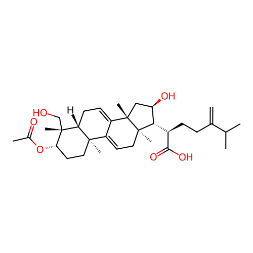 | InChI | InChI=1S/C33H50O6/c1-19(2)20(3)9-10-22(29(37)38)28-25(36)17-33(8)24-11-12-26-30(5,23(24)13-16-32(28,33)7)15-14-27(39-21(4)35)31(26,6)18-34/h11,13,19,22,25-28,34,36H,3,9-10,12,14-18H2,1-2,4-8H3,(H,37,38)/t22-,25-,26-,27+,28+,30-,31-,32-,33+/m1/s1 |