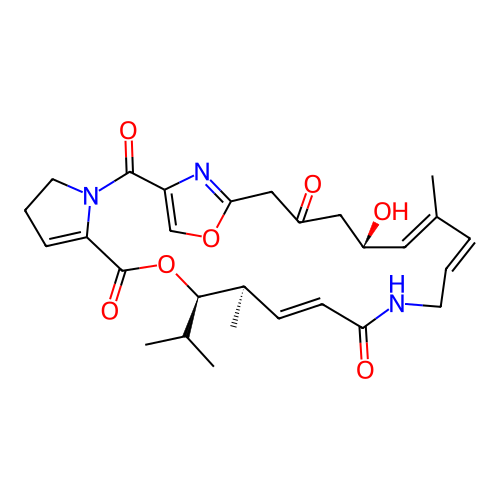 | SMILES | C[C@@H]1/C=C/C(=O)NC/C=C/C(=C/[C@H](CC(=O)CC2=NC(=CO2)C(=O)N3CCC=C3C(=O)O[C@@H]1C(C)C)O)/C |