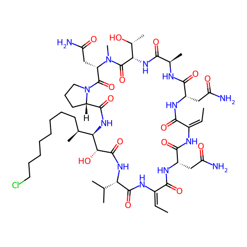 | SMILES | C/C=C/1\C(=O)N[C@H](C(=O)N[C@@H](C(=O)N[C@H](C(=O)N([C@H](C(=O)N2CCC[C@H]2C(=O)N[C@@H]([C@H](C(=O)N[C@H](C(=O)N/C(=C/C)/C(=O)N[C@H](C(=O)N1)CC(=O)N)C(C)C)O)[C@@H](C)CCCCCCCCCl)CC(=O)N)C)[C@@H](C)O)C)CC(=O)N |