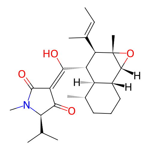 | SMILES | C/C=C(\C)/[C@@H]1[C@H]([C@@H]2[C@H](CCC[C@H]2[C@@H]3[C@]1(O3)C)C)/C(=C/4\C(=O)[C@H](N(C4=O)C)C(C)C)/O |