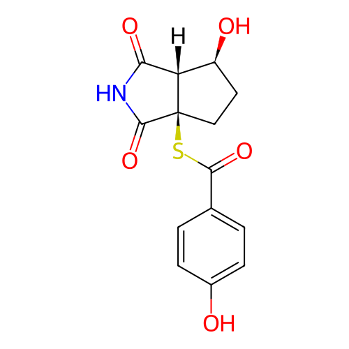 | SMILES | C1C[C@]2([C@@H]([C@H]1O)C(=O)NC2=O)SC(=O)C3=CC=C(C=C3)O |