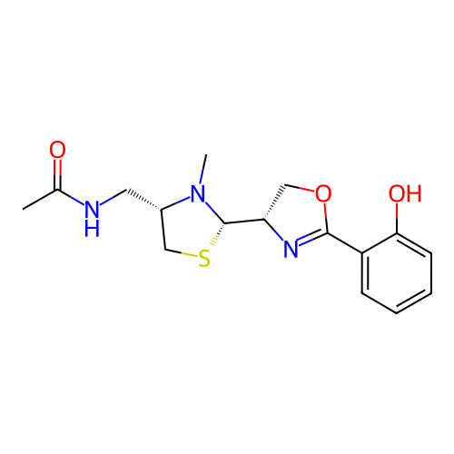 | SMILES | CC(=O)NC[C@H]1CS[C@H](N1C)[C@@H]2COC(=N2)C3=CC=CC=C3O |