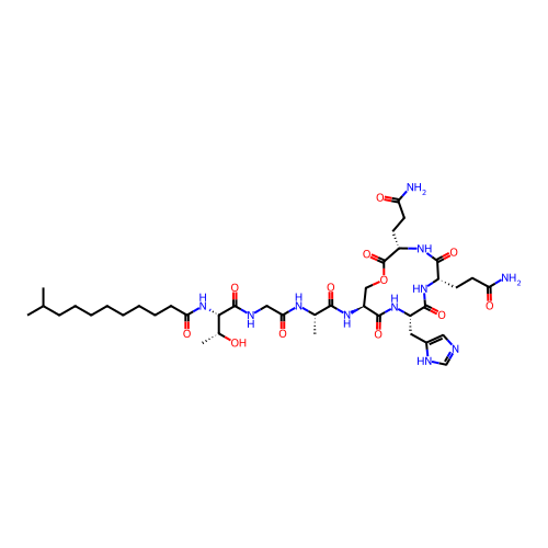 | SMILES | C[C@H]([C@@H](C(=O)NCC(=O)N[C@@H](C)C(=O)N[C@H]1COC(=O)[C@@H](NC(=O)[C@@H](NC(=O)[C@@H](NC1=O)CC2=CN=CN2)CCC(=O)N)CCC(=O)N)NC(=O)CCCCCCCCC(C)C)O |