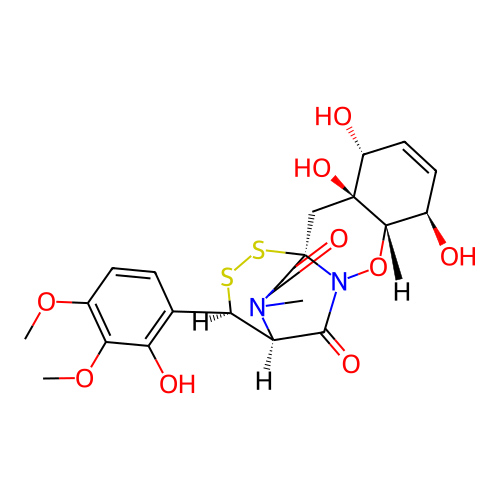 | SMILES | CN1[C@@H]2[C@H](SS[C@@]3(C1=O)C[C@@]4([C@@H](C=C[C@H]([C@@H]4ON3C2=O)O)O)O)C5=C(C(=C(C=C5)OC)OC)O |
