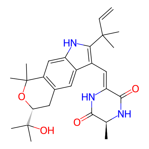 | SMILES | C[C@H]1C(=O)N/C(=C\C2=C(NC3=CC4=C(C[C@@H](OC4(C)C)C(C)(C)O)C=C32)C(C)(C)C=C)/C(=O)N1 |