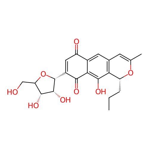 | InChI | InChI=1S/C22H24O8/c1-3-4-14-16-10(5-9(2)29-14)6-11-13(24)7-12(18(25)17(11)20(16)27)22-21(28)19(26)15(8-23)30-22/h5-7,14-15,19,21-23,26-28H,3-4,8H2,1-2H3/t14-,15?,19-,21-,22-/m1/s1 |