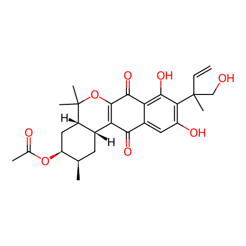 | SMILES | C[C@@H]1C[C@@H]2[C@H](C[C@@H]1OC(=O)C)C(OC3=C2C(=O)C4=CC(=C(C(=C4C3=O)O)C(C)(CO)C=C)O)(C)C |