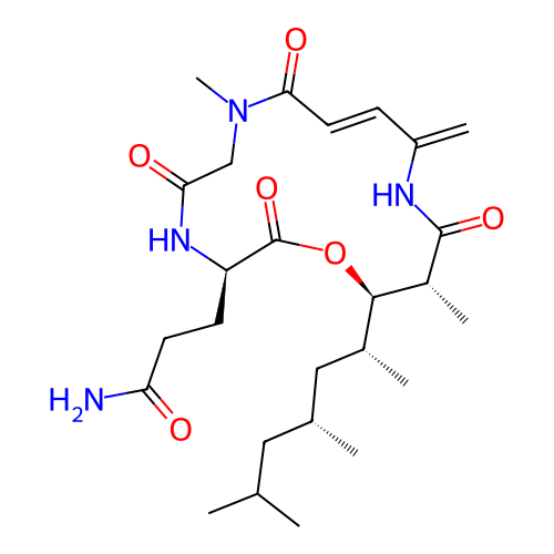 | SMILES | C=C1/C=C/C(=O)N(C)CC(=O)N[C@H](CCC(N)=O)C(=O)O[C@H]([C@H](C)C[C@H](C)CC(C)C)[C@@H](C)C(=O)N1 |