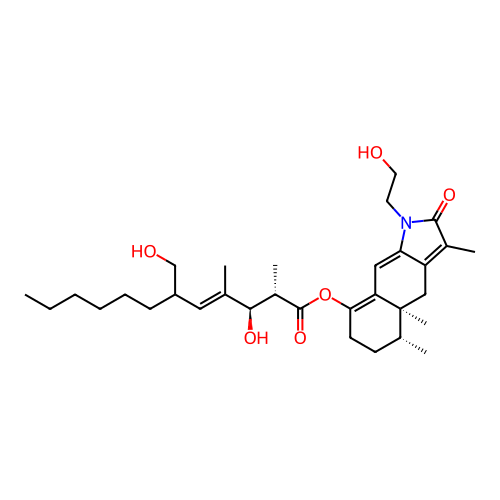 | SMILES | CCCCCCC(CO)/C=C(\C)/[C@@H]([C@H](C)C(=O)OC1=C2C=C3C(=C(C(=O)N3CCO)C)C[C@]2([C@@H](CC1)C)C)O |