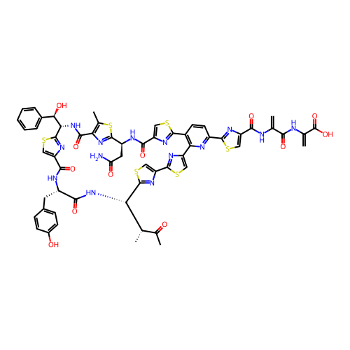 | SMILES | CC1=C2C(=O)N[C@H](C3=NC(=CS3)C(=O)N[C@H](C(=O)N[C@H](C4=NC(=CS4)C5=NC(=CS5)C6=C(C=CC(=N6)C7=NC(=CS7)C(=O)NC(=C)C(=O)NC(=C)C(=O)O)C8=NC(=CS8)C(=O)N[C@H](C(=N2)S1)CC(=O)N)[C@@H](C)C(=O)C)CC9=CC=C(C=C9)O)[C@@H](C1=CC=CC=C1)O |
