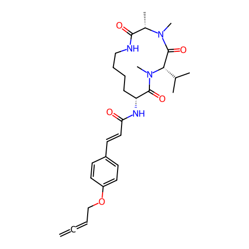 | SMILES | C[C@H]1C(=O)NCCCC[C@H](C(=O)N([C@H](C(=O)N1C)C(C)C)C)NC(=O)/C=C/C2=CC=C(C=C2)OCC=C=C |