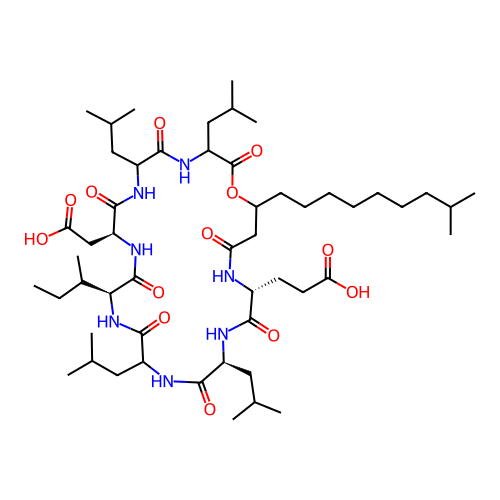 | SMILES | CCC(C)[C@H]1C(=O)N[C@H](C(=O)NC(C(=O)NC(C(=O)OC(CC(=O)N[C@@H](C(=O)N[C@H](C(=O)NC(C(=O)N1)CC(C)C)CC(C)C)CCC(=O)O)CCCCCCCC(C)C)CC(C)C)CC(C)C)CC(=O)O |