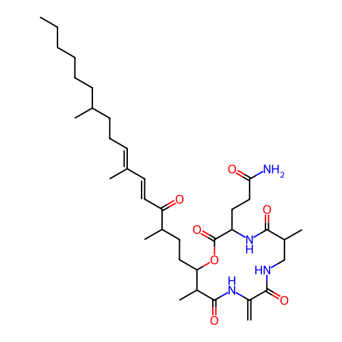 | SMILES | CCCCCCC(C)CC/C=C(\C)/C=C/C(=O)C(C)CCC1C(C(=O)NC(=C)C(=O)NCC(C(=O)NC(C(=O)O1)CCC(=O)N)C)C |