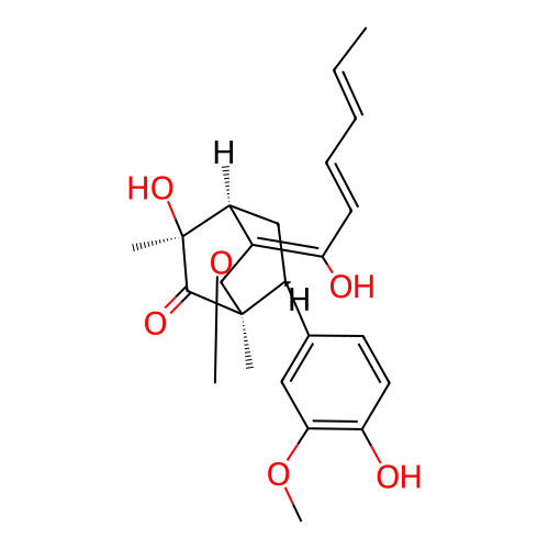 | InChI | InChI=1S/C23H26O6/c1-5-6-7-8-17(25)19-15-12-14(13-9-10-16(24)18(11-13)29-4)22(2,20(19)26)21(27)23(15,3)28/h5-11,14-15,24-25,28H,12H2,1-4H3/b6-5+,8-7+,19-17-/t14-,15+,22-,23+/m1/s1 |