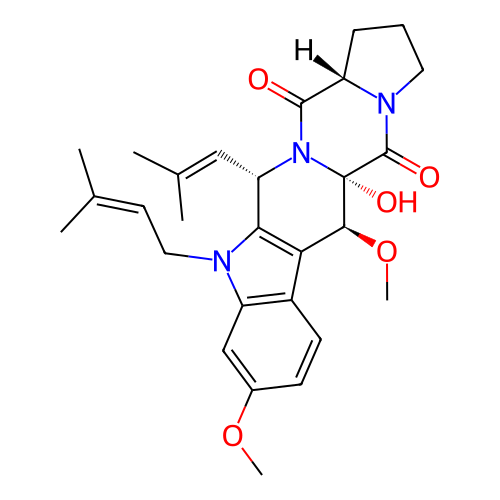 | SMILES | CC(=CCN1C2=C(C=CC(=C2)OC)C3=C1[C@@H](N4C(=O)[C@@H]5CCCN5C(=O)[C@]4([C@H]3OC)O)C=C(C)C)C |