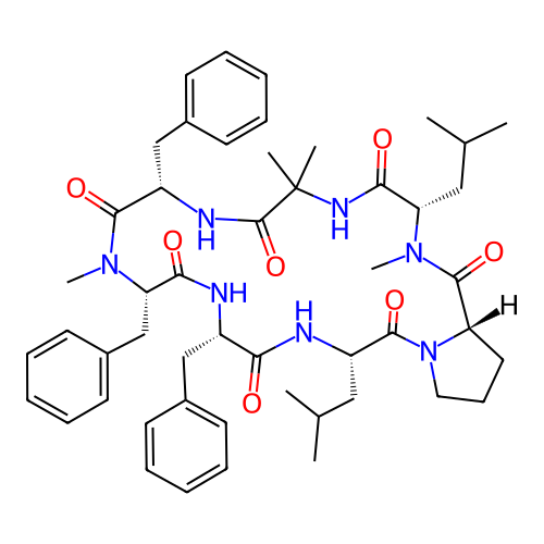 | SMILES | CC(C)C[C@H]1C(=O)N2CCC[C@H]2C(=O)N([C@H](C(=O)NC(C(=O)N[C@H](C(=O)N([C@H](C(=O)N[C@H](C(=O)N1)CC3=CC=CC=C3)CC4=CC=CC=C4)C)CC5=CC=CC=C5)(C)C)CC(C)C)C |