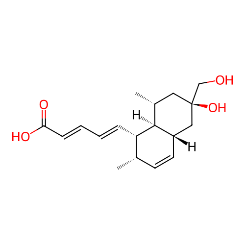 | InChI | InChI=1S/C18H26O4/c1-12-7-8-14-10-18(22,11-19)9-13(2)17(14)15(12)5-3-4-6-16(20)21/h3-8,12-15,17,19,22H,9-11H2,1-2H3,(H,20,21)/b5-3+,6-4+/t12-,13+,14-,15-,17-,18+/m0/s1 |