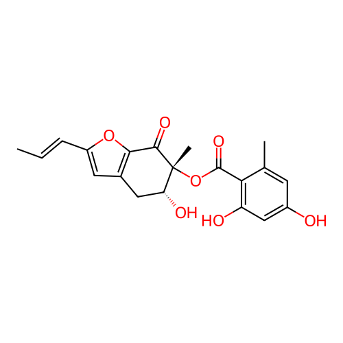 | SMILES | C/C=C/C1=CC2=C(O1)C(=O)[C@]([C@@H](C2)O)(C)OC(=O)C3=C(C=C(C=C3C)O)O |