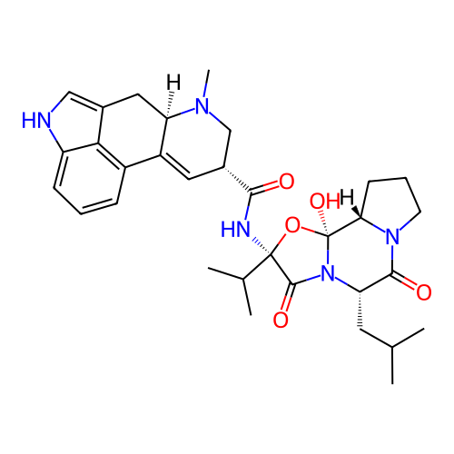 | InChI | InChI=1S/C32H41N5O5/c1-17(2)12-25-29(39)36-11-7-10-26(36)32(41)37(25)30(40)31(42-32,18(3)4)34-28(38)20-13-22-21-8-6-9-23-27(21)19(15-33-23)14-24(22)35(5)16-20/h6,8-9,13,15,17-18,20,24-26,33,41H,7,10-12,14,16H2,1-5H3,(H,34,38)/t20-,24-,25+,26+,31-,32+/m1/s1 |
