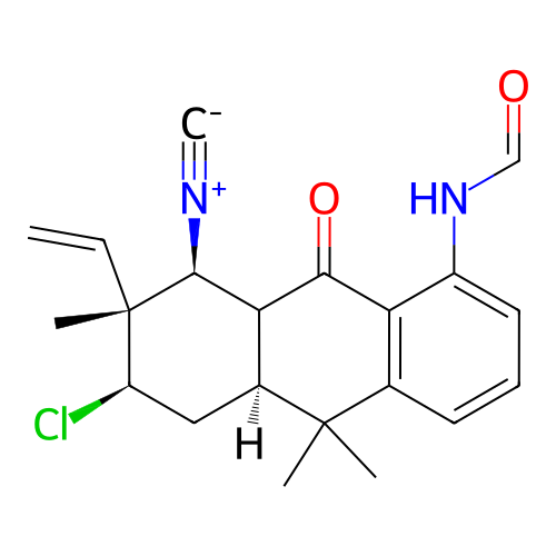 | SMILES | C[C@@]1([C@@H](C[C@H]2C([C@@H]1[N+]#[C-])C(=O)C3=C(C2(C)C)C=CC=C3NC=O)Cl)C=C |