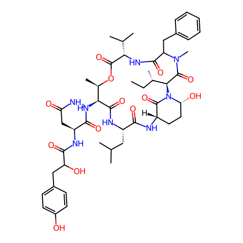 | SMILES | CC[C@H](C)[C@H]1C(=O)N(C(C(=O)N[C@H](C(=O)O[C@@H]([C@@H](C(=O)N[C@H](C(=O)N[C@H]2CC[C@H](N1C2=O)O)CC(C)C)NC(=O)[C@H](CC(=O)N)NC(=O)C(CC3=CC=C(C=C3)O)O)C)C(C)C)CC4=CC=CC=C4)C |