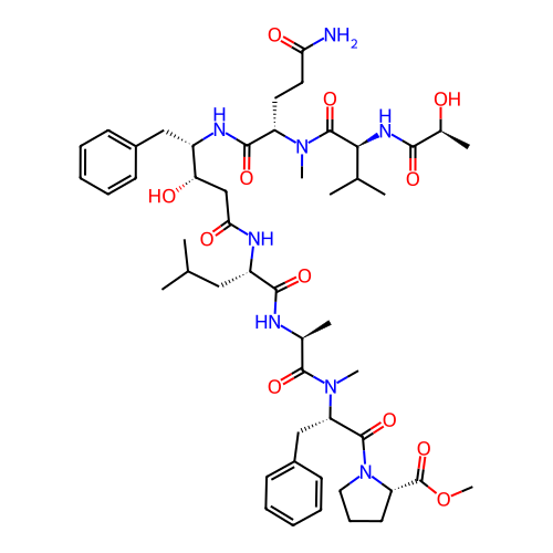 | SMILES | C[C@@H](C(=O)N(C)[C@@H](CC1=CC=CC=C1)C(=O)N2CCC[C@H]2C(=O)OC)NC(=O)[C@H](CC(C)C)NC(=O)C[C@@H]([C@H](CC3=CC=CC=C3)NC(=O)[C@H](CCC(=O)N)N(C)C(=O)[C@H](C(C)C)NC(=O)[C@H](C)O)O |
